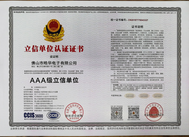 佛山市皓華電子有限公司成立于一九九三年,是一家生產全系列高、中、低壓、安規瓷介電容器,壓敏電阻器,獨石電容器的生產廠家。產品廣泛應用于IT、通訊、家電、儀器儀表、充電器等設備中。公司員工近三百人,其中有多名本科及碩士學歷……